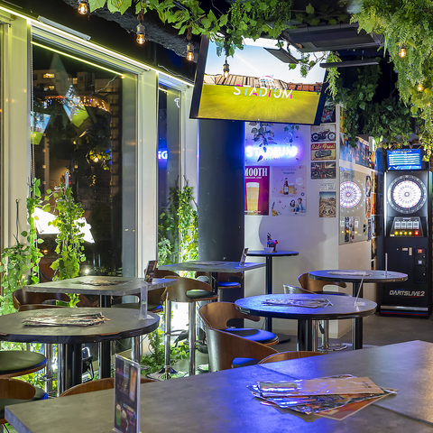 神戸三ノ宮の開放感あふれる空間で、ダーツ・ボードゲームなどのアミューズメントやスポーツの試合がある日は皆でわいわいスポーツ観戦も可能です。スタイリッシュなアミューズメントバーで忘れられない体験を。