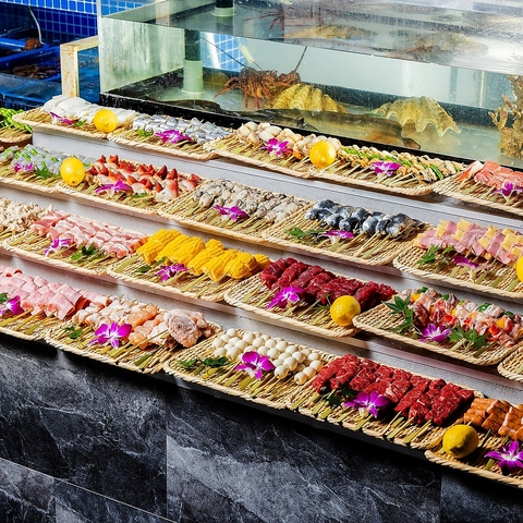 格調高い雰囲気の店内はご宴会・デート・記念日・女子会・接待などシーンを問わず、ご利用頂けます。豪華食べ放題にふさわしい、贅を尽くした品々をお愉しみいただけます。「本ズワイガニガニ」「本マグロ」「アワビ」「雲丹」「北京ダック」など高級食材も食べ放題で。開放感溢れる心地良い空間で、優雅なひとときをお愉しみください。