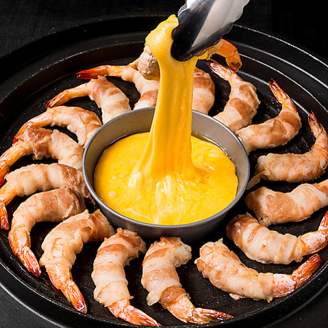 自家製ガーリックソースでとろ~りチーズをたっぷり絡めてお召し上がりください!豚バラやプリプリのエビをトルティーヤに包んで2種(チーズ・チリ)にディップしてお召し上がりいただきます!誕生日、記念日、女子会等あらゆる宴会シーンを盛り上げてくれます!各種宴会の幹事様必見のオススメコースでございます!