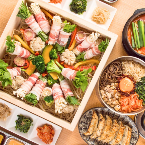 食べ放題のみなら2180円~楽しめる韓美の食べ放題!オプションで67種の食べ放題も人気急上昇中★飲み放題はソフトドリンク飲み放題、アルコール含むスタンダード飲み放題は驚愕の800円~☆韓国酒含むプレミアム飲み放題が1200円~オプションで付けれます★