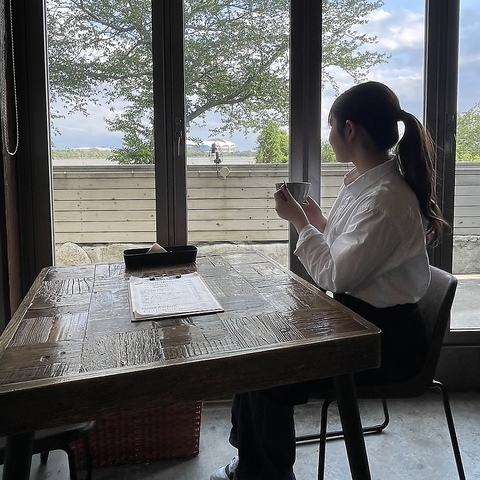 鳥屋野潟を眺めながらのデートも楽しい♪窓際の明るいお席、座り心地抜群のソファー席、プライベートな空間を楽しめるロフト席、半地下席などデートや女子会、夜カフェ利用にも最適な店内です♪