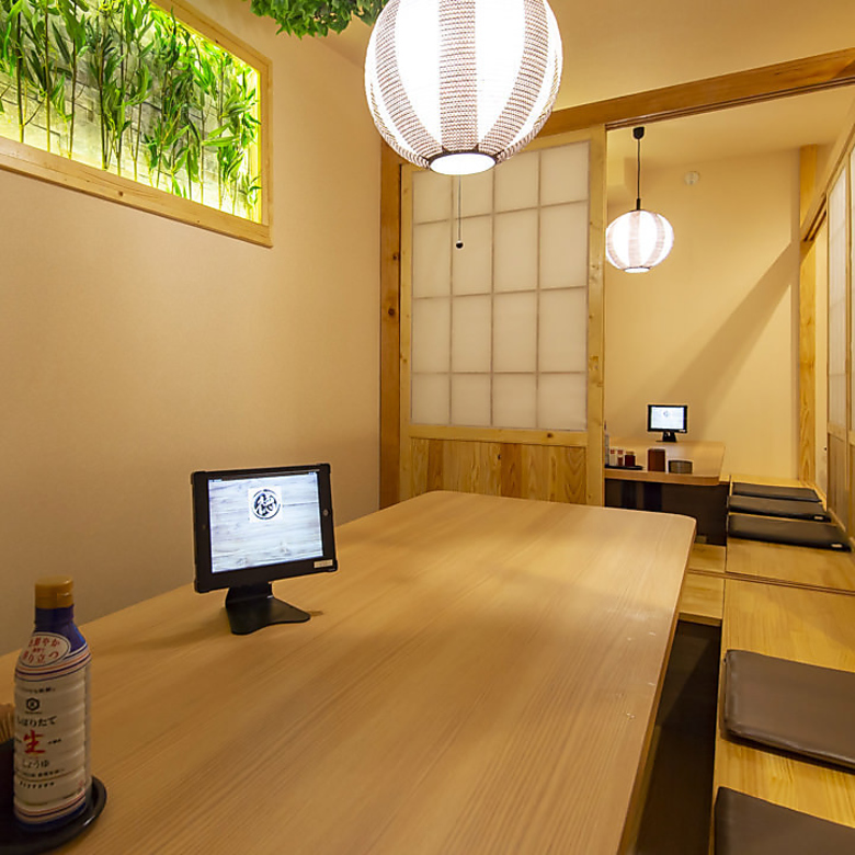 プライベート個室空間をご用意♪木を基調とした落ち着きある上品な空間◎照明も明るすぎずゆったりとくつろげるお部屋になっております。ゆったり宴会や接待、わいわい楽しめる会食や女子会で大変人気のお席となっております♪