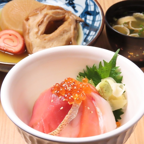 人気観光地だからこそ新たな食をご体感頂けます。市場内で仕入れた鮮魚を贅沢にご提供。寿司、海鮮丼などもご用意。おでんと海鮮丼、おでんと寿司の両方楽しめるセットもご用意しております!