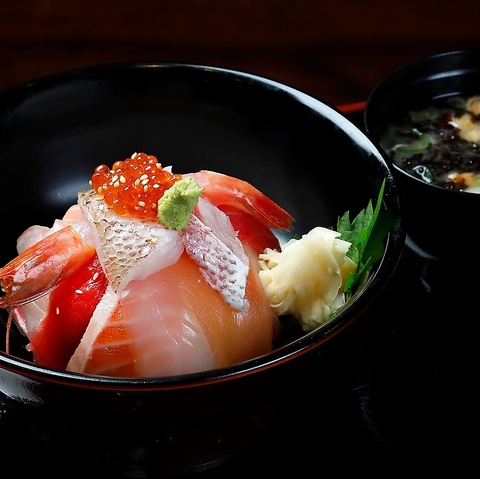 日本海の海の幸のネタを使用!美しく盛り付けられた海鮮丼は宝石箱のよう。のど黒丼、サーモンいくら丼も人気です。限定のまかない丼はすぐに完売になるのでお早めにご来店下さい!