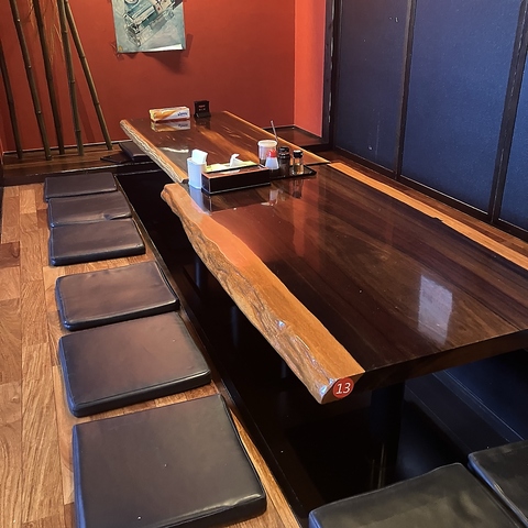 【広々とした掘りごたつ個室】5名~14名利用可の個室は、2部屋繋げると最大30名、3部屋繋げると最大50名まで収容可能です!小上がりの掘りごたつ部屋なので、ゆったりとおくつろぎください♪