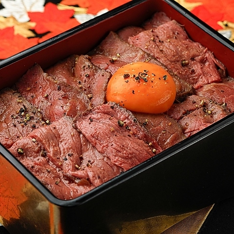 口の中でとろける厳選和牛のローストビーフを贅沢に。特製タレとご飯の相性も抜群で、至福のランチタイム♪