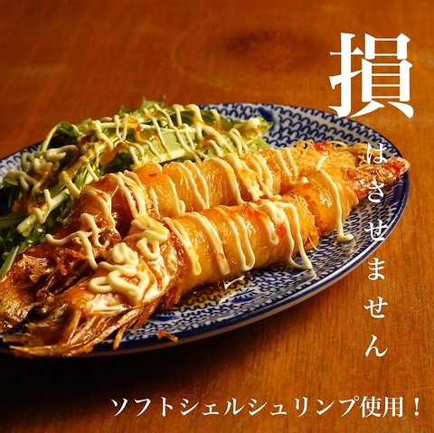 皮まで丸ごとお召し上がりいただける大海老のチリマヨネーズ豪快に頭からお召し上がりください♪河原町居酒屋・河原町グルメ・河原町ディナー・河原町飲み放題