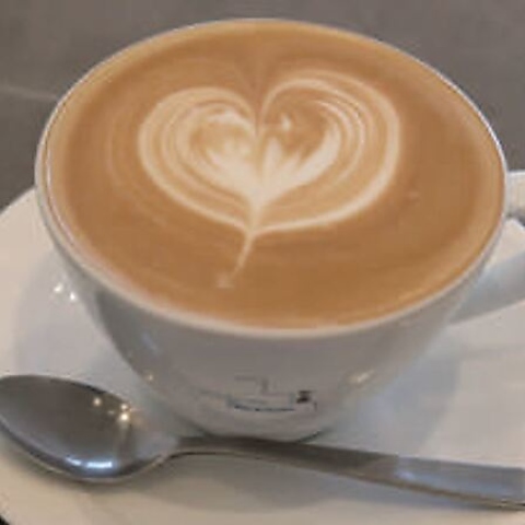 エスプレッソにたっぷりのミルクフォームを加えたドリンクです。 当店ではデザインカプチーノでご提供しています。