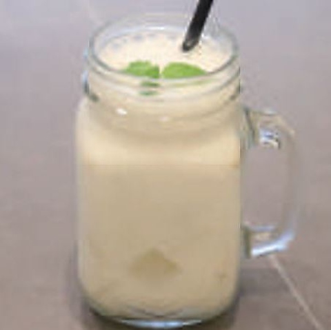 抹茶ドリンクの上にふわふわのミルクの泡がのったドリンク。ほんのり甘め。