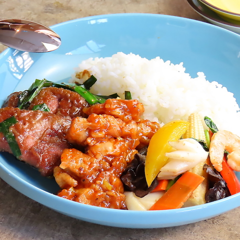 ランチタイムは定食をご用意。忙殺される日々でも、ウマい飯は格別です。