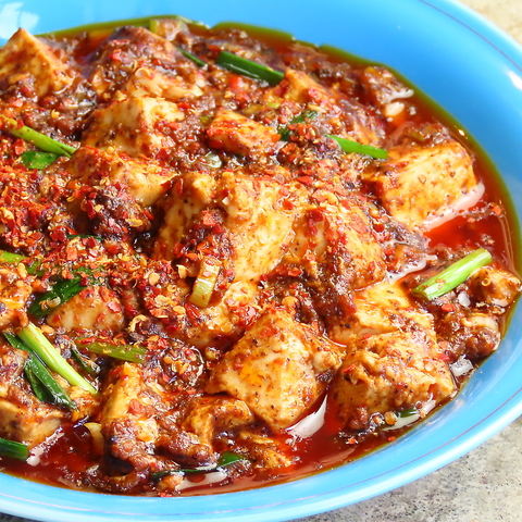 花山椒と自家製ラー油が決めての麻婆豆腐。白米にもお酒にも相性バッチリ。