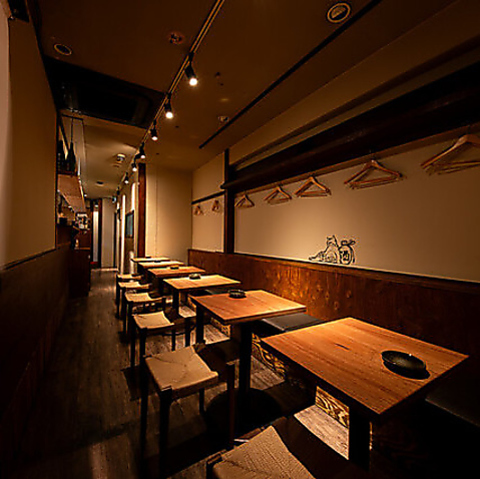 店内の壁よく見ると…?なんと可愛らしい猫のイラストが♪落ち着いた照明と洗練されたインテリアが演出するおしゃれ空間。渋谷、渋谷駅でのデートや女子会はもちろん、記念日にもおすすめです。落ち着いた居酒屋居心地の良さと非日常感が調和した雰囲気の中で、特別なひとときをお過ごしください。