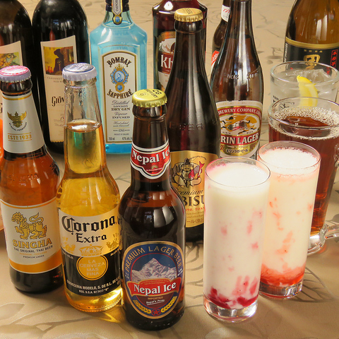 生ビールやウイスキーはもちろん、インド・タイのビールなどのお酒も充実!今日は異国気分♪