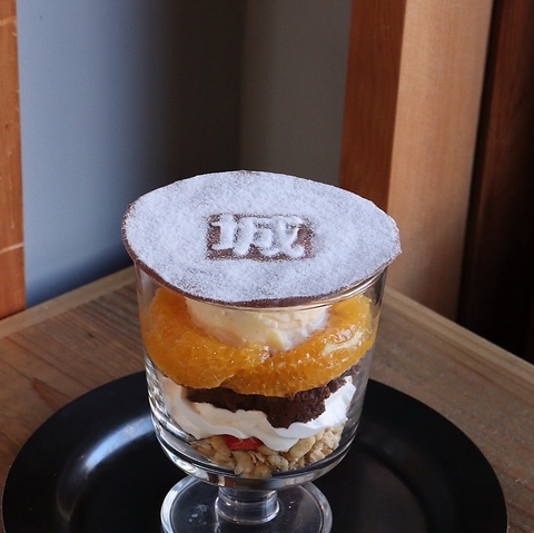 グラノーラ、ホイップ、生チョコ、オレンジ、自家製バニラジェラートを重ね、仕上げに薄く張ったチョコレートに、熱々のエスプレッソをかけて完成。チョコが溶け、エスプレッソの苦味と柑橘の爽やかさが広がる、少し大人のデザートです。