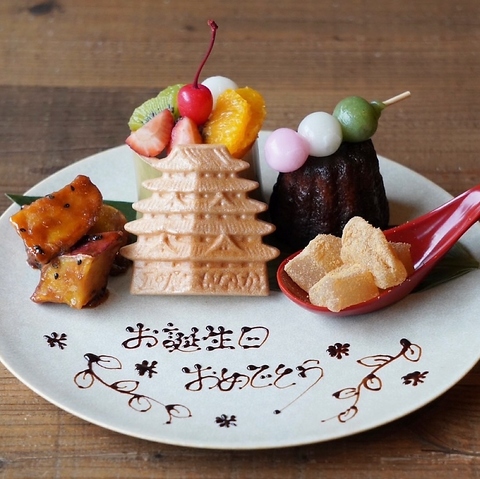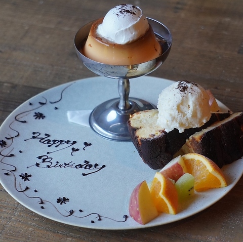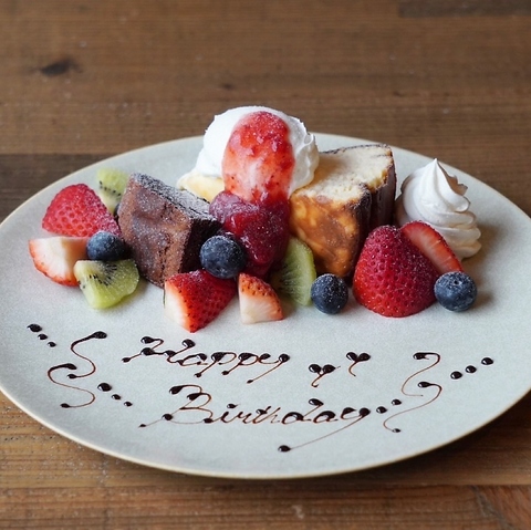 お祝いプレートも事前予約にてご準備しておりますのでコース欄からご予約下さいませ♪また、季節ごとに変わる旬なフルーツを揃えておりますので毎シーズン飽きずにお楽しみ頂けます!