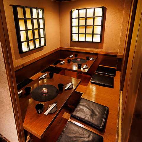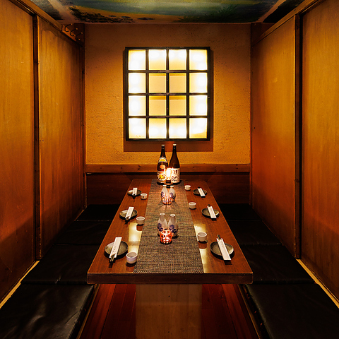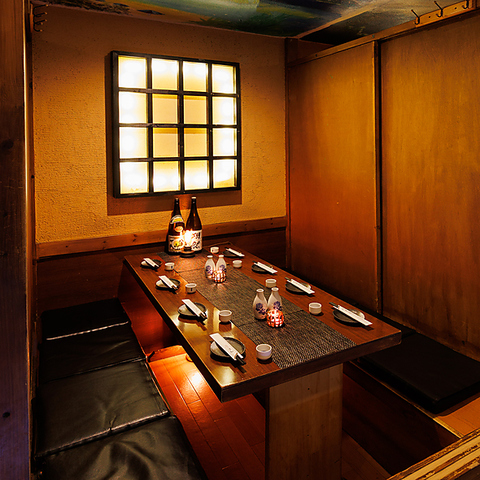 6~10名様でご利用いただける掘りごたつの個室席♪錦糸町に居ることを思わず忘れてしまいそうな、ゆったりとした時間を楽しめるお席は、ビジネスシーンでの飲み会や接待などにご利用いただきやすい様、落ち着いた大人の為の空間をコンセプトに照明や内装にこだわっています。人気席につきお早目のご予約をおすすめします。