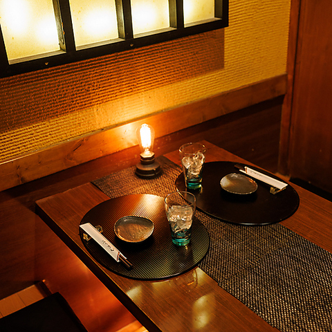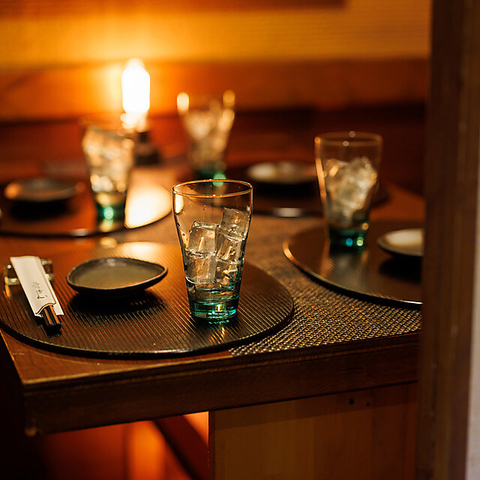 2~4名様の少人数でご利用いただけるテーブル個室席。あえて明度を落とした柔らかなオレンジの照明が艶のある落ち着いた雰囲気を演出します。錦糸町でのデートの後には、大人の雰囲気漂うこちらのお席でゆったりとお過ごしください。食材選びからこだわった自慢の料理と豊富な種類の銘酒で素敵な一日の思い出を彩ります♪