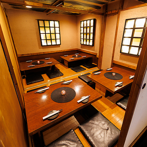 6~12名様でご利用いただける掘りごたつの個室席は、小規模な飲み会や宴会におすすめのお席です。ゆったりと足を伸ばしてお寛ぎいただきながら、当店自慢の逸品料理や豊富なドリンクをお楽しみ下さい。3時間の飲み放題が付いた宴会も◎気軽な飲みの場や、宴会にもお使いいただけるお得なクーポンを多数ご用意しております。