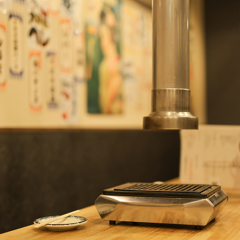 【カウンター席/おひとり様も大歓迎】 店内にはカウンター席もあり、おひとり様や少人数でも気軽に利用可能。目の前で焼き上がるお肉の香ばしい香りを楽しみながら、特別なひとときをお過ごしいただけます。