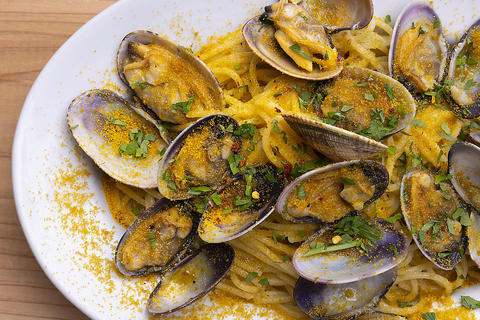 イゾラ伝統のタコとニンニクのマリネ、生しらすとアオサのピッツァ、ネロビアンコ(イカ墨ピッツァ)などの定番メニューもご提供。さらに、福岡の地元食材を取り入れた季節限定メニューも充実。幻の茸「博多すぎ茸」、唐津産「うまかねぎ」など、四季折々の食材を活かしたメニューをぜひご堪能ください。