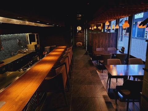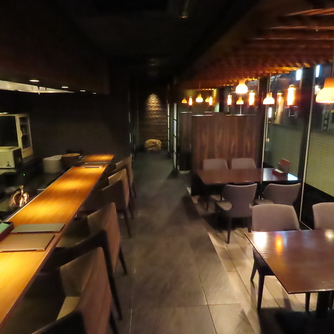 目の前に調理場を望むカウンター席です。スタイリッシュで落ち着いた雰囲気の中で楽しむお食事は、恋人・夫婦でのいつものデートを上質なものに。空間を楽しみたい女子会にもおすすめです!