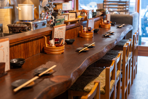 ≪店内雰囲気≫中の様子が窺えるウッディーな外観で温かみのある店内は奥にテーブル、手前に居心地いいカウンター。木の温もりに包まれた空間で、リラックスしたひとときを楽しめます。友人や一人でも、心地よい時間をお過ごしください。
