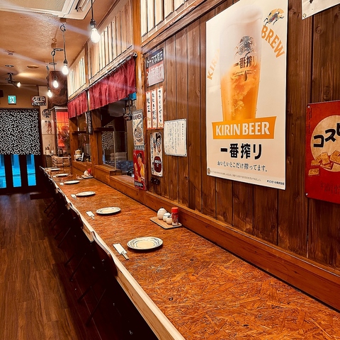 カウンター席もございます!スペースをゆったりと確保したカウンター席となりますので、窮屈感もなくゆっくり料理とお酒をお楽しみください。一人でしっぽり飲むのもよし、友人と語り合うのもよし!アットホームな雰囲気でお待ちしております!