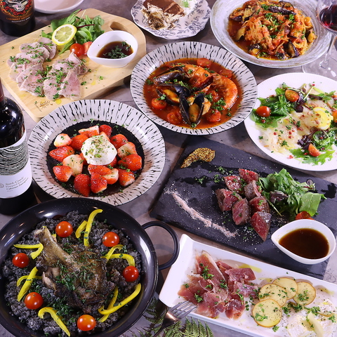 お昼はイタリアンランチ、夜はイタリアンかつ、バルのような雰囲気でございます◎ブラックパエリアをはじめとした、創作イタリアンも多数ご用意しております!ぜひ一度ご賞味ください!