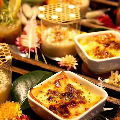 店内にはいたるところにドライフラワーが飾ってあり、来店された皆様をお出迎え!綺麗で清潔感のある店内はデート、女子会、ママ会などにも最適!