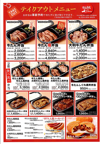 テイクアウト | 牛たん炭焼 利久 YORKPARK郡山店 - クーポン・予約のホットペッパーグルメ