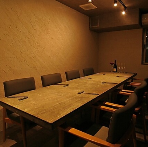 最大8名様までご利用いただける完全個室をご用意しております。接待やご家族での集まりにも最適な空間です。プライベート感を大切にした個室で、ゆっくりとお食事をお楽しみいただけます。個室は人気のため、ご予約・お問い合わせはお早めにお願いいたします。素晴らしいひとときをお約束いたします。