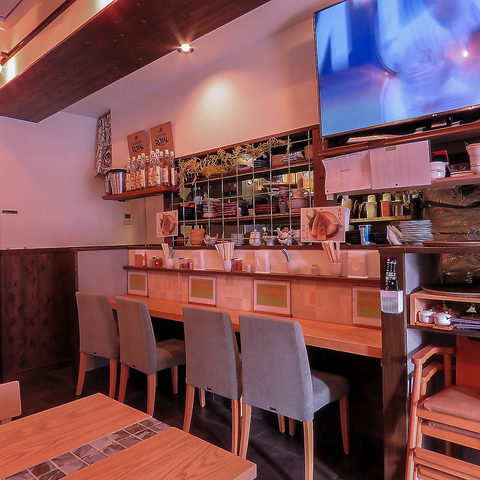 4名テーブル4台、カウンター8席 どの席からでも50インチのモニターが見れてスポーツイベント飲みも◎