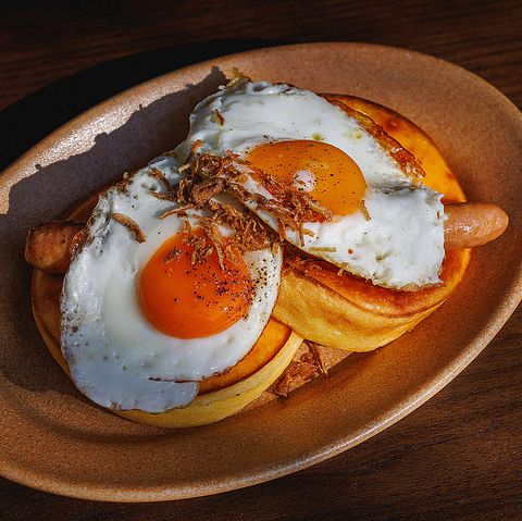 LDKで大人気のチーズスフレパンケーキ。出来立てはスフレのような極上のふわふわ食感。冷めてもしっとり美味しく、お好みのフルーツを添えて楽しむのもおすすめです。