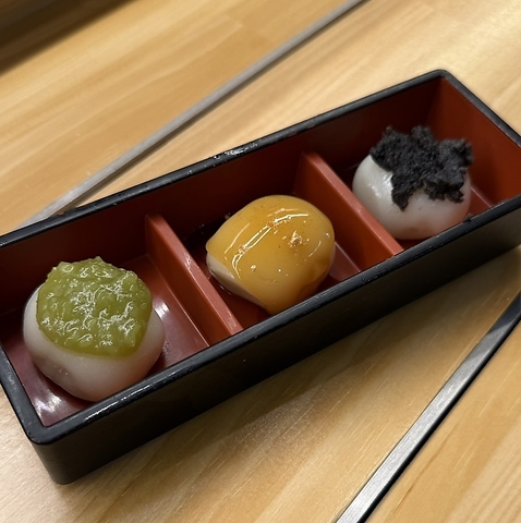【極上】みたらし団子醤油ベースの甘いタレで団子の美味しさを引き立てます。