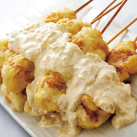 人気度、オススメ度NO.1はコレ!炭火で焼き上げる串焼きです。中でもコクと豊かな旨味あふれる「ありたどり黒焼串」は、炭火で燻し、炭火の香りを肉に纏わせた風味豊かな串焼きです。焼き鳥はお店で毎日串打ちしています。熱の伝わり方も考慮した串打ちはまさに熟練の技!香ばしくてジューシーな串焼きに仕上げています。