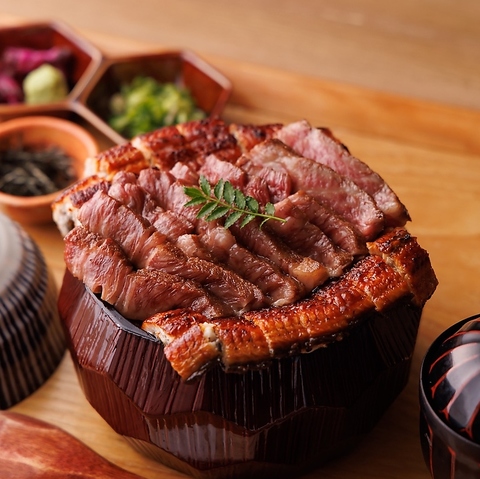 当店は従来の鰻店の概念をくつがえす創作メニューを提供。和牛と鰻の至福の組み合わせは是非ともお試し頂きたい一品。※鰻は半尾サイズです。