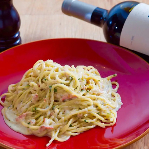 【贅沢なひとときを過ごせます◎】カニクリームのパスタ1980円(税込)濃厚な味わいとクリーミーさが特徴です