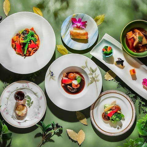 店内は天井が高く広々とした造りが特徴。自然光が差し込む明るい空間は、昼間のランチタイムには爽やかで開放感があり、夜には落ち着いた雰囲気に変わります。席の間隔も広めにとられているため、周囲を気にせずゆったりと食事を楽しめるのも嬉しいポイント。大切な人との特別な時間を過ごすのにぴったりの上質な空間です。