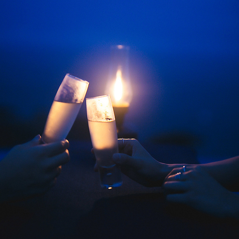 デッキでの乾杯。サプライズでのご利用も大歓迎です。