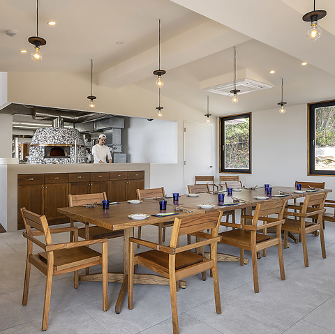 【薪釜で焼き上げるピッツァ】シェフが腕をふるい、薪窯で丁寧に焼き上げる本格ピッツァ。素材の旨みとモチモチの生地をぜひご堪能ください。焼き上がる様子もお楽しみいただけます。