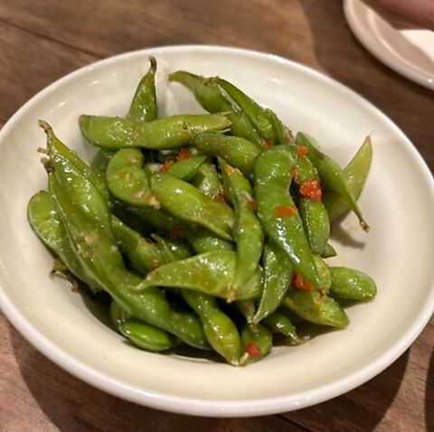 お酒が進む酸っぱ辛い味付けのボリュームのある枝豆です。