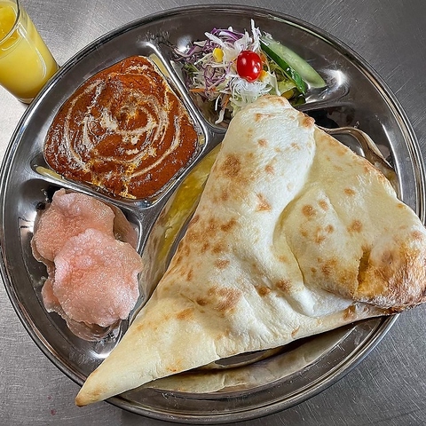 チキンカレー、キーマカレー、チキンホウレンソウカレー、バターチキンカレー、ダルカレーからお選びいただけます。