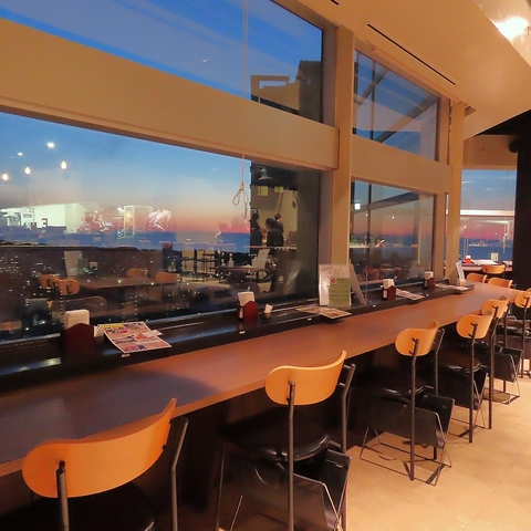 ランチやディナーを堪能できる空間。大きなガラス窓からは新潟市内を一望できます♪