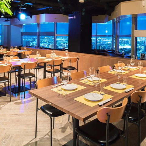 温かみのある木材を使用したテーブルや椅子でまとまりがあり、大きなガラス窓からは絶景が一望できる◎完全予約制で宴会ディナーをお楽しみいただけます。ディナーでは旬の素材を使った季節のコース料理をご提供しております。シェフ自慢のコースを思う存分ご賞味ください。