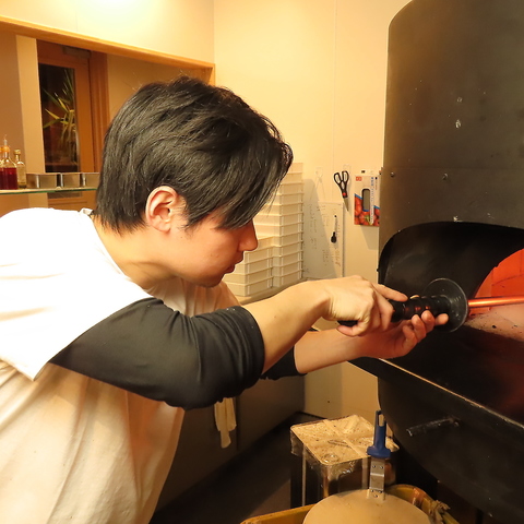 釜の火も見える非現実的な空間で日常を忘れたひとときをお楽しみください。お皿は1枚1枚、イタリアの職人が手がけたものをとり寄せて使用!細部にまでこだわったおもてなしが、食事を通して得られる喜びや感動を高めます。