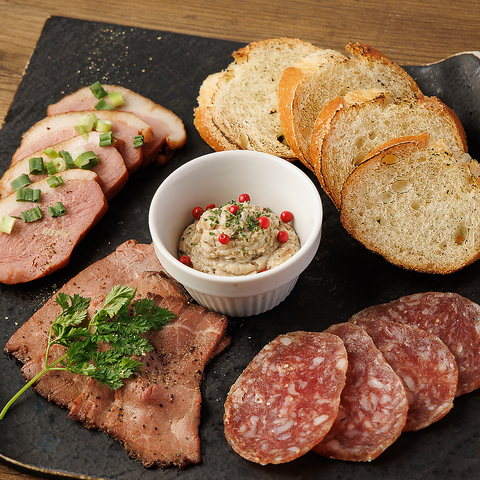 お肉の前菜盛り合わせや人気のアヒージョなど、前菜からメインまで多彩な肉バル料理をご用意。部位や調理法にこだわり、専門店ならではの居酒屋料理が楽しめます。