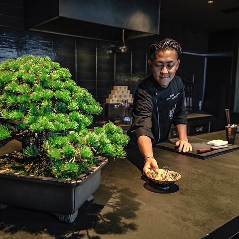 当店は船橋駅より徒歩1分と好立地◎周辺地域では珍しい、黒を基調としたシックな大人の雰囲気漂う店内は、デートや接待・会食にも最適です。お席は調理風景を観賞でき臨場感あふれるカウンター席や、お得意様のための個室席など完備◎大人の隠れ家のような空間で寛ぐ、贅沢なひとときをご提供いたします。
