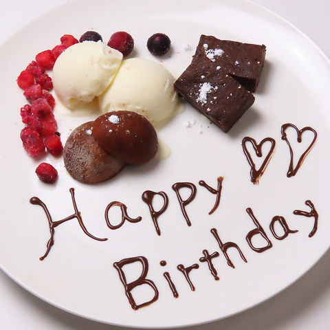 人気のメッセージ付きのデザートプレートをご提供致します♪特別なお祝いをヒルリンが実現いたします。