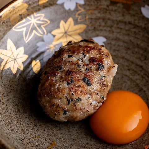 「上ノ間特製ハンバーグ」はコースでもお楽しみいただける自慢の一品。牛肉100%で仕上げているため、しっかりとしたお肉の旨みをご堪能いただけます。黄身をつけてお召し上がりください。