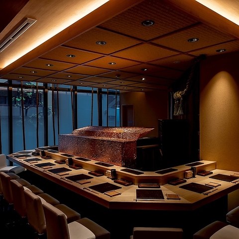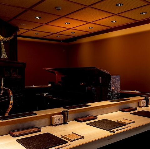特別な一席に相応しい上質空間♪ライブ感溢れるカウンター席は、1名様~16名様までご利用いただけます。目の前で繰り広げられる料理の技、食材の豊かな香り、揺らめく薪の炎が五感を刺激。萬丸上ノ間での食の体験をより良いものにします。2人横並びで座って会話を楽しめるので、特別な一席にもおすすめです。